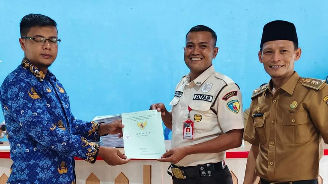 Muhammad Umar Rio Suka Jaya Dampingi Pihak BPN Bungo Menyerahkan Sertifikat PTSL Kepada Masyarakat