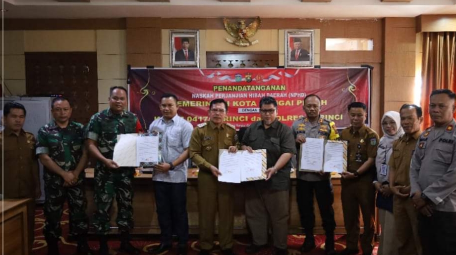 SUNGAI PENUH , JurnalJambi.com – Pemerintah Kota Sungai memberikan dana hibah dalam rangka pengamanan Pilkada secara serentak tahun 2024 kepada Kapolres Kerinci dan Kodim 0417 Kerinci, Selasa (4/6), di Pola Kantor Walikota Sungai Penuh.