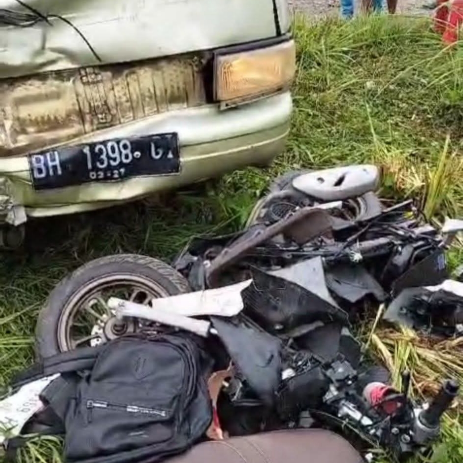 BUNGO , JurnalJambi.com – Telah terjadi kecelakaan pagi inibdi jalan lintas Sumatera arah Bangko tepatnya di pal 9 depan gudang AA, antara mobil carry minibus dengan lawan nya sepeda motor.