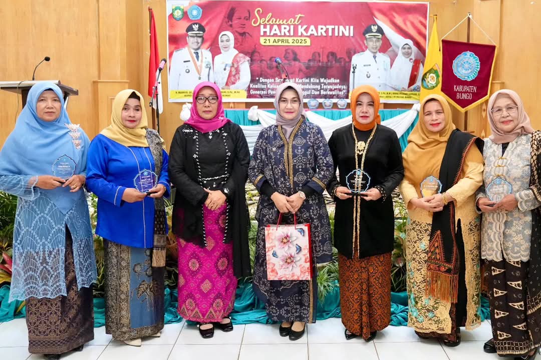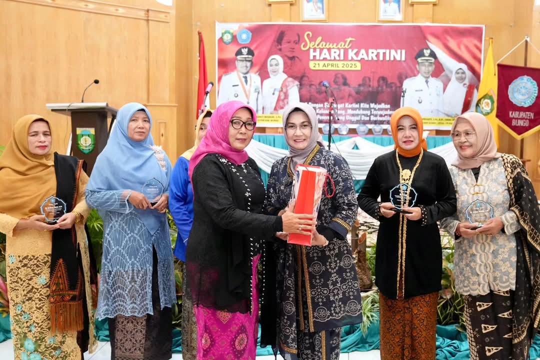 Dirinya juga menyampaikan rasa terima kasih kepada Ketua TP PKK Bungo karena selain memperingati Hari Kartini juga tepatnya masa jabatan Ketua TP PKK Bungo Dr. Hj Verawaty, S. Pd, M. Pd akan berakhir.