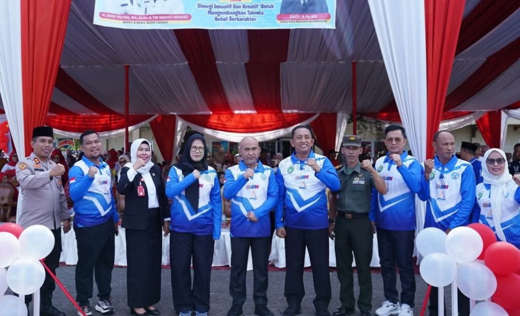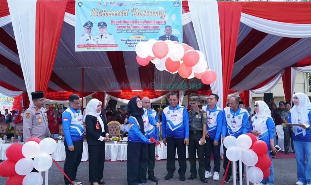 Bungo, Jurnaljambi.com – Bupati Bungo H. Dedy Putra, S.H., M.Kn beserta Ketua TP. PKK Kabupaten Bungo Ny. Hj. Elza Kurniawati Dedy menghadiri Pembukaan Pelaksanaan Ajang Talenta, OSN, O2SN, FLS3N dan GSI Tingkat Kabupaten Bungo Tahun 2025 bertempat di Lapangan Gor Serungai Baru Muara Bungo. Kamis (19/06/2025)
