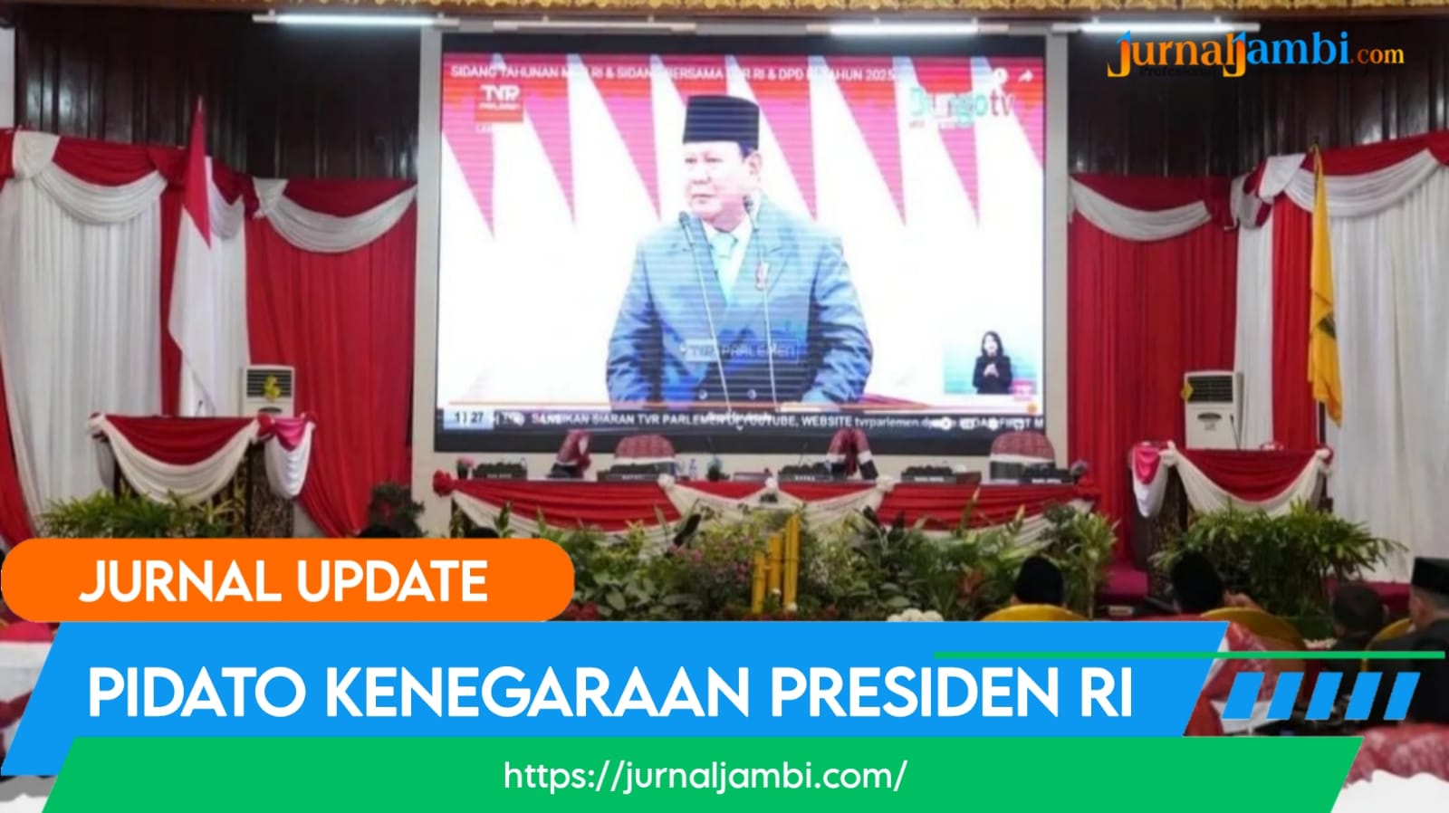Pidato Presiden Republik Indonesia yang disampaikan dari Gedung MPR/DPR/DPD RI di Jakarta disiarkan secara langsung melalui layar lebar. Dalam pidatonya, Presiden Prabowo Subianto menekankan pentingnya persatuan, gotong royong, dan kerja nyata seluruh elemen bangsa dalam menghadapi tantangan global, sekaligus mendorong pembangunan yang merata hingga ke pelosok daerah.,”Singkatnya.
