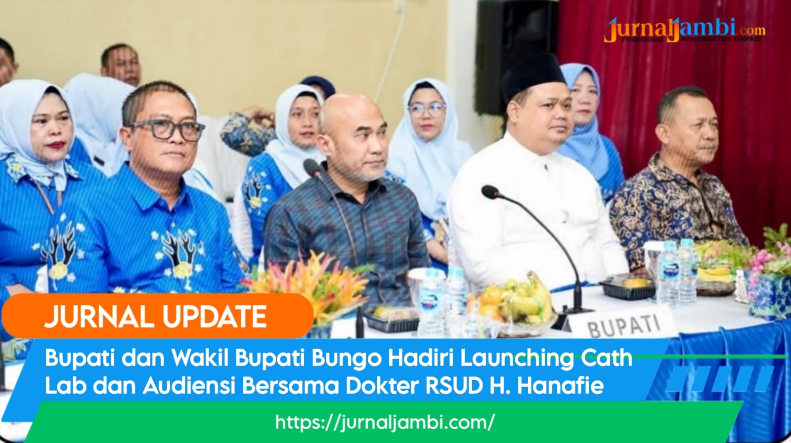 Bungo, Jurnaljambi.com – Bupati Bungo H. Dedy Putra, S.H., M.Kn bersama Wakil Bupati Bungo Tri Wahyu Hidayat menghadiri acara launching layanan kateterisasi jantung (Cath Lab) sekaligus audiensi bersama seluruh dokter RSUD H. Hanafie Muara Bungo. Kegiatan tersebut berlangsung di Aula Farmasi RSUD H. Hanafie Muara Bungo, Jum’at (20/9/25).