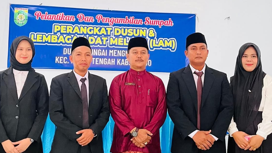 Bungo, Jurnaljambi.com – Pemerintah Dusun Sungai Mengkuang, Kecamatan Rimbo Tengah Kabupaten Bungo, menggelar acara pelantikan perangkat dusun dan Pengukuhan Ketua dan anggota Lembaga Adat Melayu (LAM) setempat, Selasa, 14 Oktober 2025. Acara tersebut dipimpin langsung oleh Redofri, Datuk Rio Dusun Sungai Mengkuang.