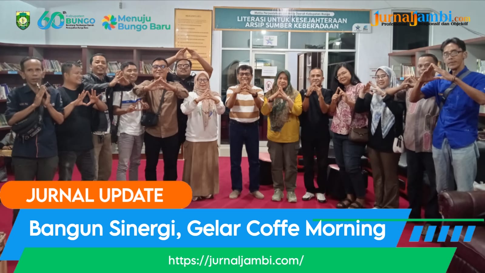 Bungo, Jurnaljambi.com – Dalam upaya mempererat hubungan kemitraan dan meningkatkan kolaborasi informasi publik, Dinas Perpustakaan dan Kearsipan Kabupaten Bungo menggelar kegiatan Coffee Morning bersama rekan-rekan jurnalis dari berbagai media, Jumat pagi (17/10), di Kantor dinas Perpustakaan dan arsip Daerah Kabupaten Bungo.