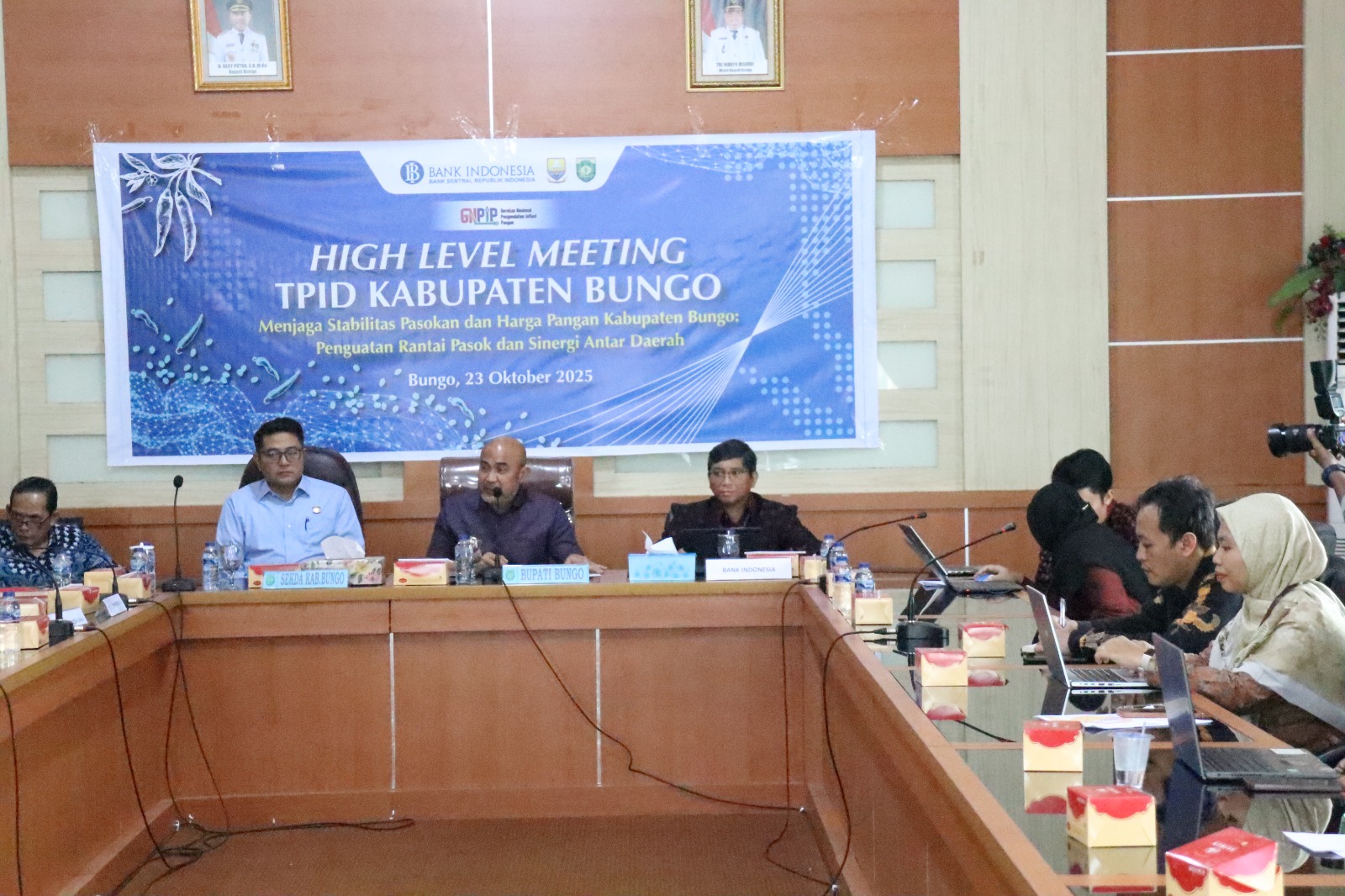 Selain bupati Bungo , rapat dihadiri oleh Sekda Bungo Dr. Doni Iskandar, Plt. Kepala Perwakilan Bank BI Provinsi Jambi, Dandim 0416 Bute atau yang mewakili, Kejari Bungo atau yang mewakili, Kepala Koordinator Wilayah Bungo BNI Daerah Jambi.