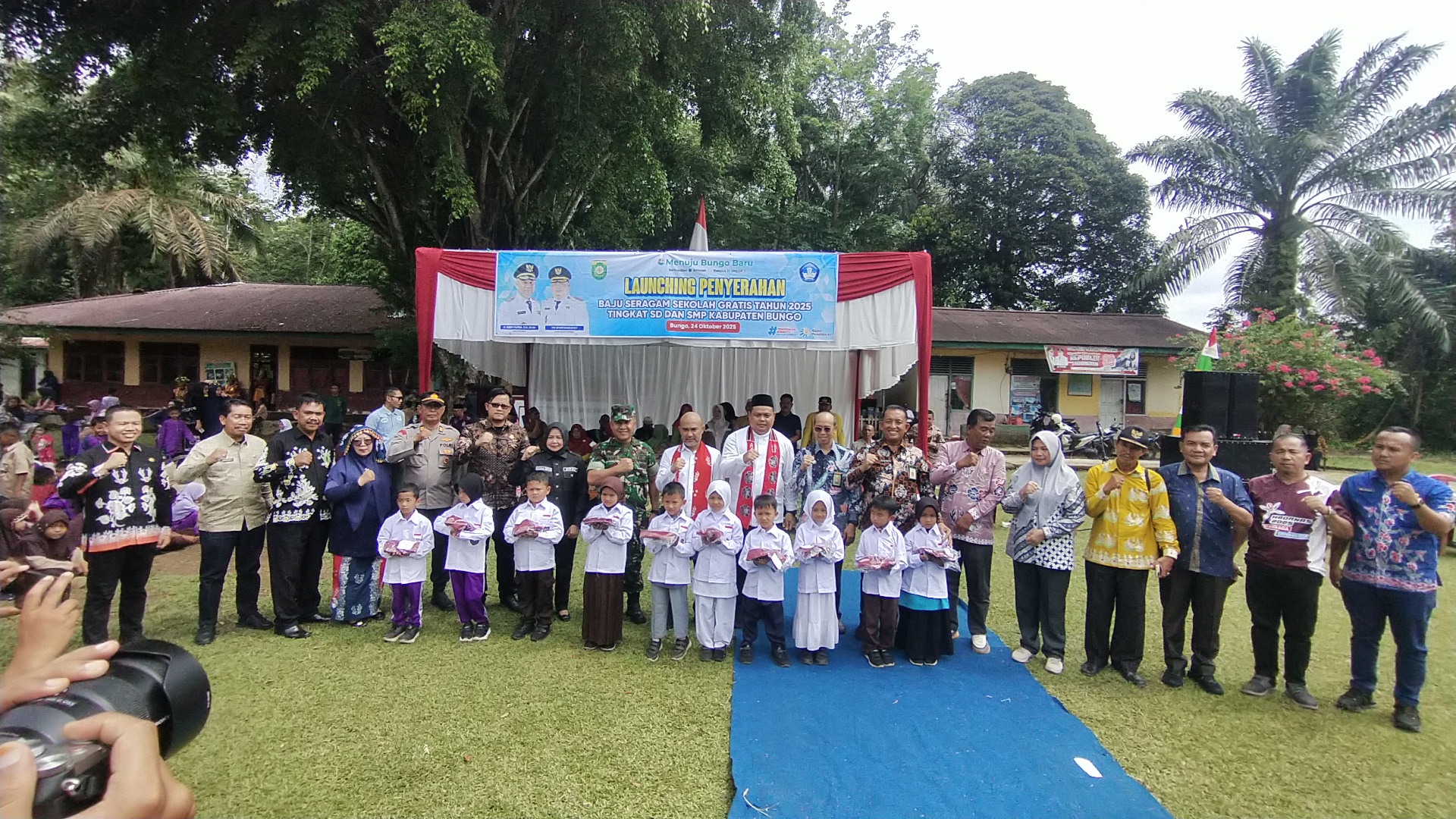 Bungo, Jurnaljambi.com – Salah satu program prioritas Bupati Bungo H. Dedy Putra, S.H., M.Kn, akhirnya terealisasi melalui peluncuran program bantuan seragam gratis bagi murid baru kelas 1 SD dan kelas 7 SMP di seluruh Kabupaten Bungo.