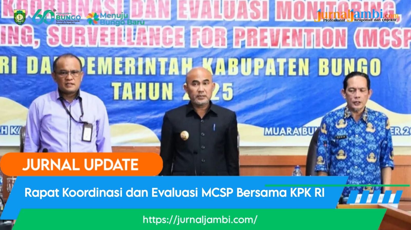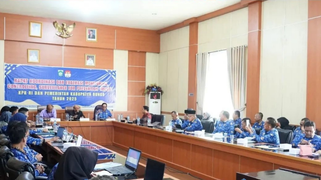 Bungo, Jurnaljamni.com – Dalam upaya memperkuat tata kelola pemerintahan yang bersih dan berintegritas, Bupati Bungo H. Dedy Putra, S.H., M.Kn memimpin secara langsung Rapat Koordinasi dan Evaluasi Monitoring, Controlling, Surveillance for Prevention (MCSP) bersama Komisi Pemberantasan Korupsi (KPK) RI, Selasa (28/10/2025).