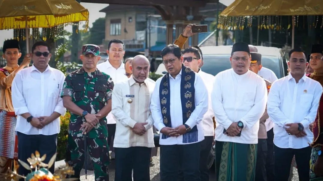 Bungo, Jurnaljambi.com — Bupati Bungo H. Dedi Putra, SH., M.Kn bersama Wakil Bupati Bungo Tri Wahyu Hidayat menyambut kedatangan Wakil Menteri Transmigrasi Republik Indonesia, H. Viva Yoga Mauladi, M.Si di Kabupaten Bungo, Minggu, (7/12/25).