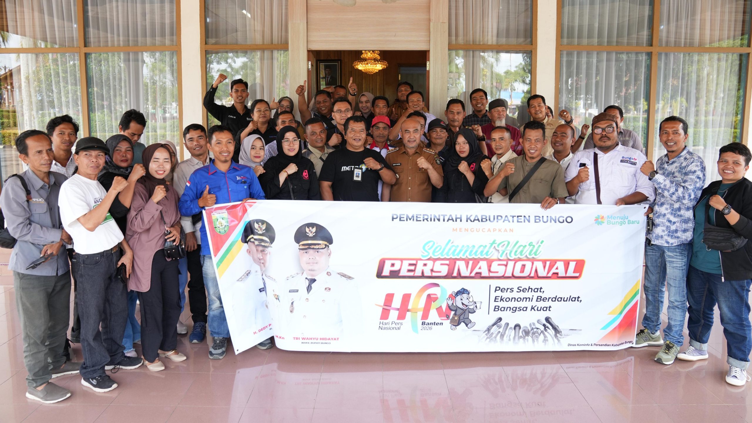 Bungo, Jurnaljambi.com – Bupati Bungo H. Dedi Putra, SH., M.Kn dan wakil Bungo Tri Wahyu Hidayat merayakan Hari Pers Nasional (HPN) bersama insan pers Kabupaten Bungo yang digelar di Rumah Dinas Bupati Bungo, Selasa, (10/2/26)