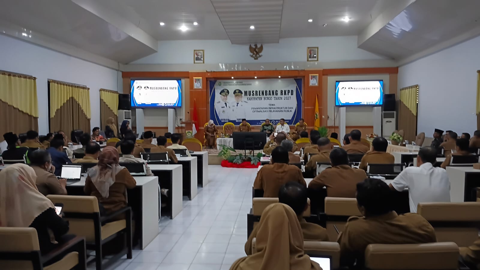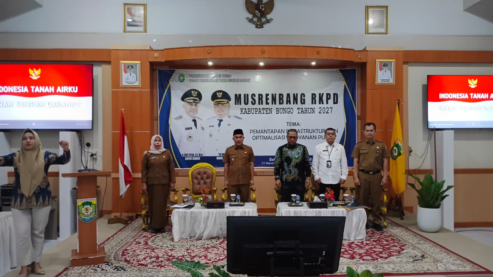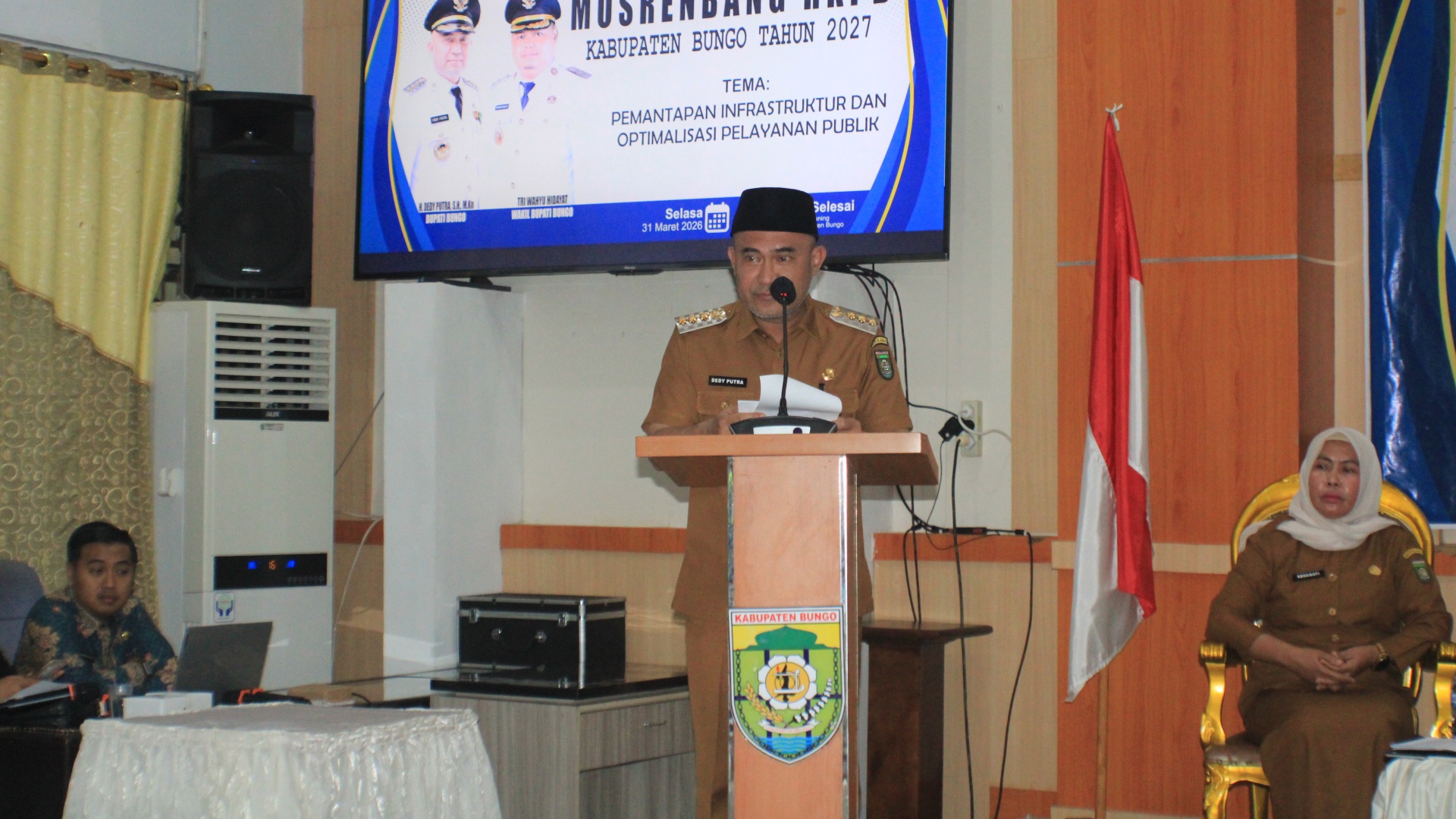 Bungo, Jurnaljambi.com – Bupati Bungo Dedy Putra resmi membuka Musyawarah Perencanaan Pembangunan (Musrenbang) RKPD Kabupaten Bungo Tahun 2027 di Aula Cempaka Kuning, Kantor Bappeda, Selasa (31/03/2026).