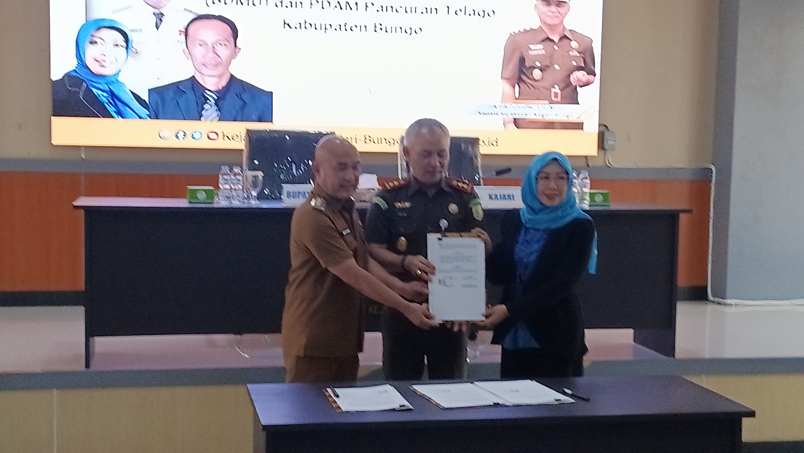 Acara tersebut dihadiri langsung oleh Bupati Bungo H. Dedy Putra, SH, M.Kn Kepala Kejaksaan Negeri Bungo Fik Fik Zurofik, SH., MH beserta jajaran, Asisten II Setda Bungo Dedi Irawan, Kabag Ekonomi Setda Bungo Yudi Prawira, Kabag Hukum Setda Bungo Alex Purwendi, Direktur PDAM Pancuran Telago Ekayasa, ST, Plt Dirut PT BDMU Dyan Ike Yuliani, SE, serta para undangan lainnya.